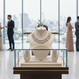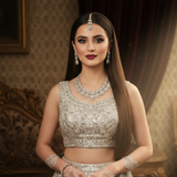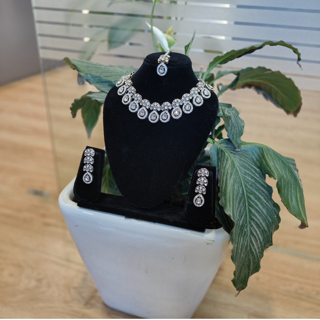 Designed to radiate timeless elegance, this set pairs beautifully with bridal lehengas, sarees, and grand festive ensembles. The teardrop motif adds graceful movement and sparkle, making it perfect for weddings, receptions, engagements, and special celebrations.